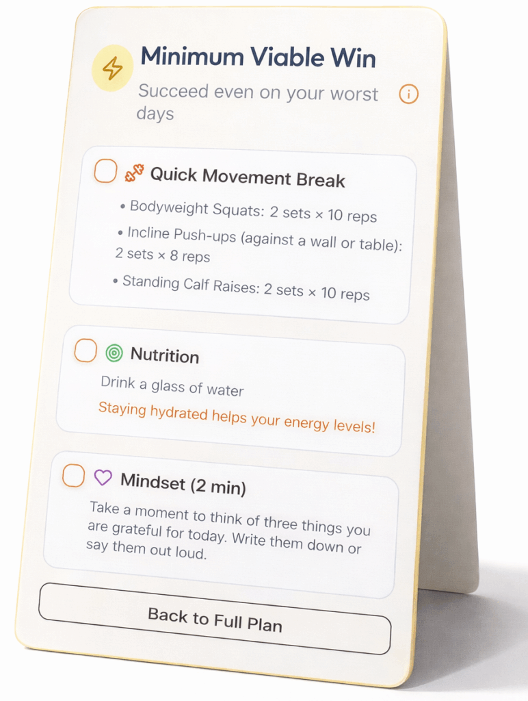 On hard days, even a few minutes of intentional movement or reflection is enough to maintain momentum.