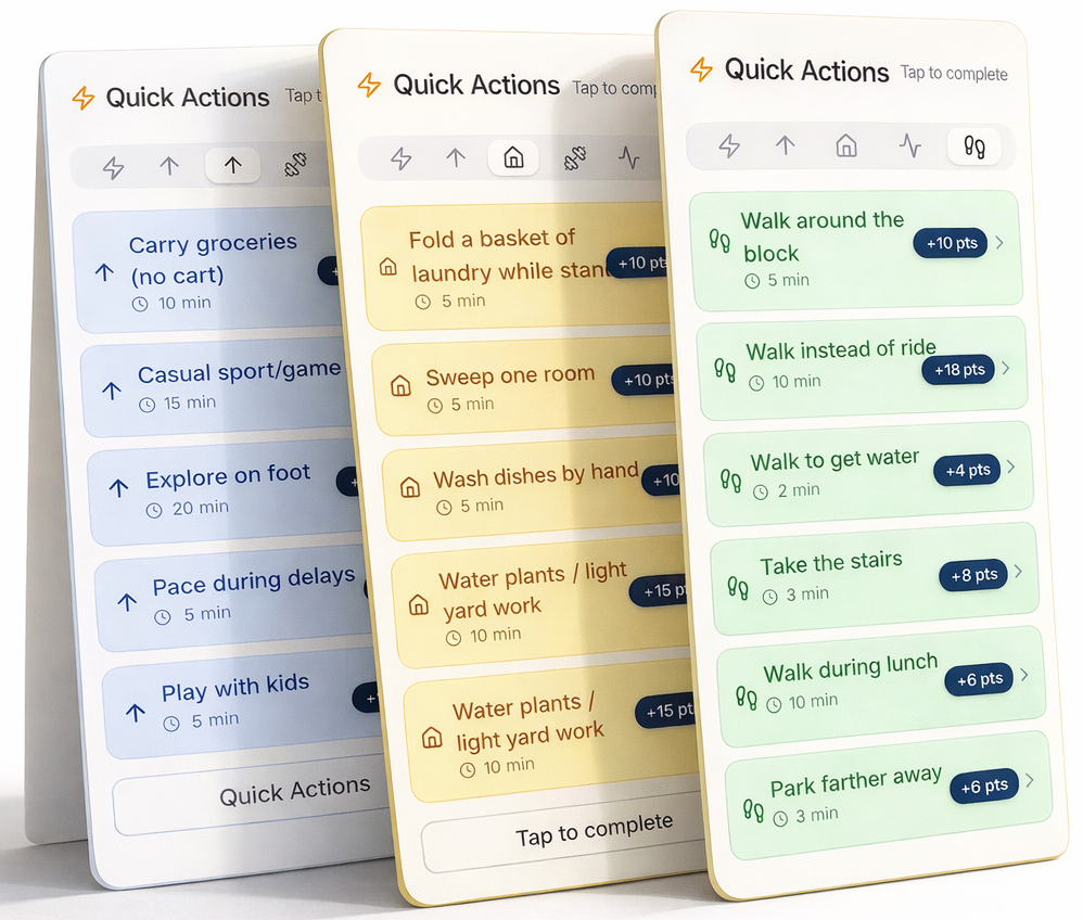 Auxano Flow tracks and encourages NEAT (Non-Exercise Activity Thermogenesis) like: